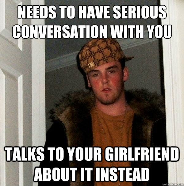 Needs to have serious conversation with you Talks to your girlfriend about it instead