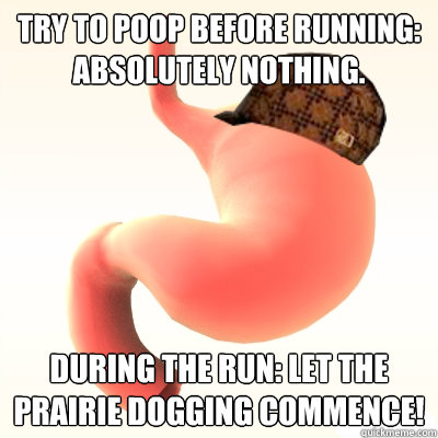 Try to poop before running: absolutely nothing. During the run: let the prairie dogging commence!