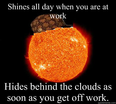 Shines forth beautifully while you're at work Hides behind clouds on the weekend