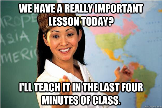 we have a really important lesson today? i'll teach it in the last four minutes of class.