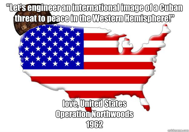"Let's engineer an international image of a Cuban threat to peace in the Western Hemisphere!" love, United States Operation Northwoods 1962