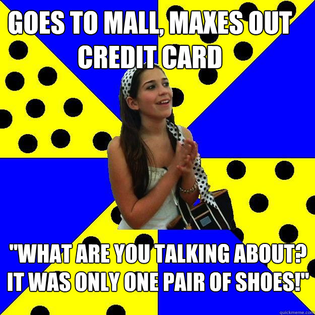 Goes to mall, maxes out credit card "What are you talking about? It was only one pair of shoes!"