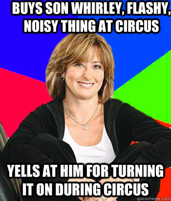 Buys son whirley, flashy, noisy thing at circus Yells at him for turning it on during circus