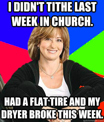 I didn't tithe last week in church. Had a flat tire and my dryer broke this week.