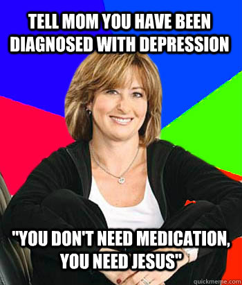 Tell mom you have been diagnosed with depression "you don't need medication, you need jesus"