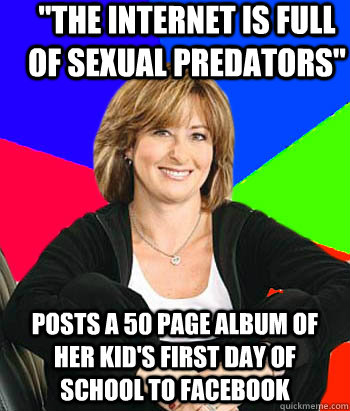"the internet is full of sexual predators" posts a 50 page album of her kid's first day of school to facebook