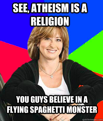 See, atheism is a religion You guys believe in a Flying Spaghetti Monster