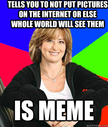 Tells you to not put pictures on the internet or else whole world will see them is meme