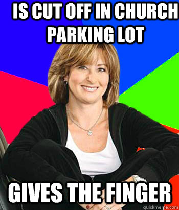is Cut off in church parking lot gives the finger