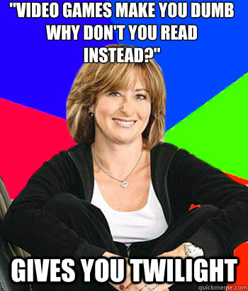 "Video games make you dumb why don't you read instead?" Gives you twilight