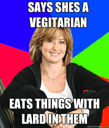 says shes a vegitarian eats things with lard in them