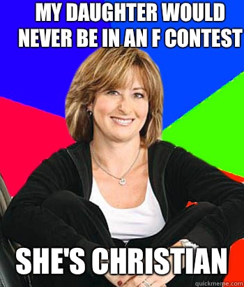 My daughter would never be in an f contest She's Christian