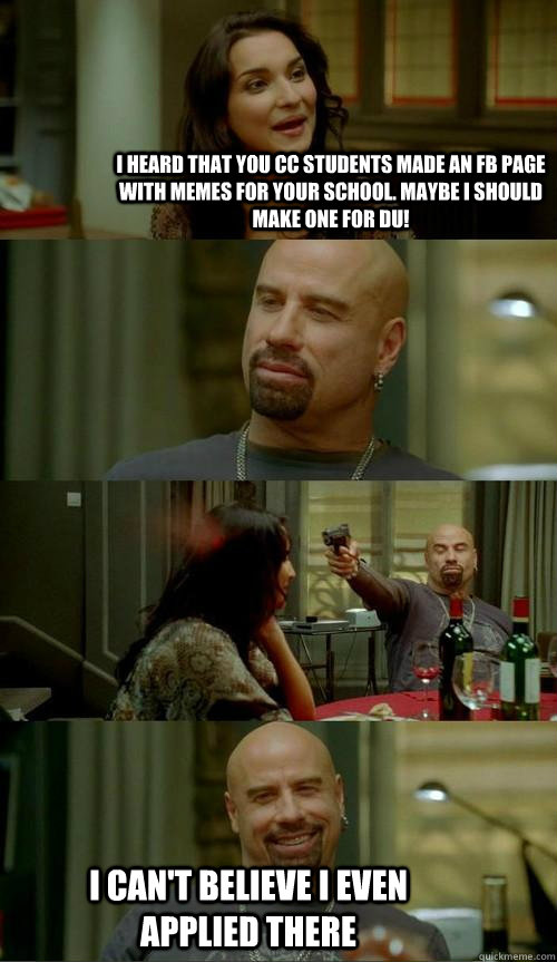 I heard that you cc students made an fb page with memes for your school. Maybe I should make one for DU! I can't believe I even applied there