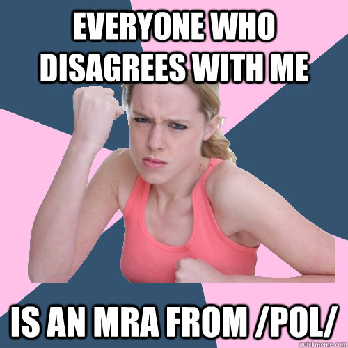 everyone who disagrees with me is an mra from /pol/