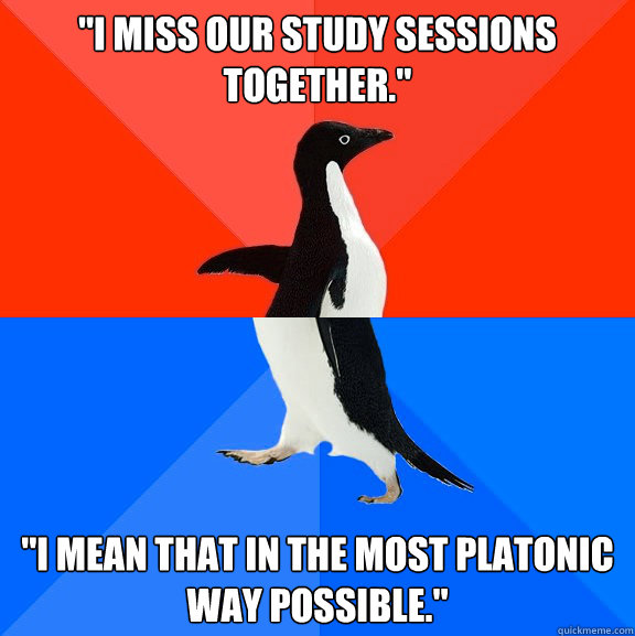 "I miss our study sessions together." "I mean that in the most platonic way possible."