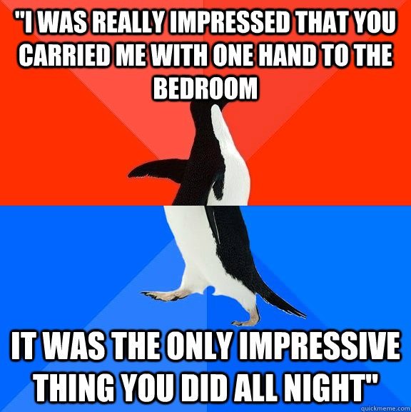"I was really impressed that you carried me with one hand to the bedroom it was the only impressive thing you did all night"