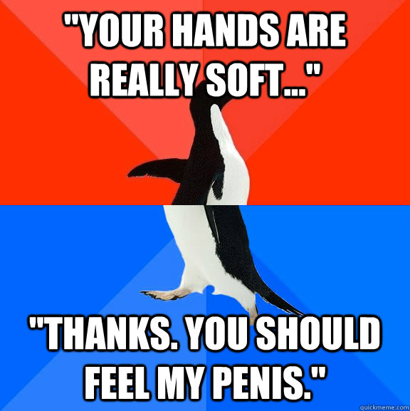 "Your hands are really soft..." "thanks. You should feel my penis."