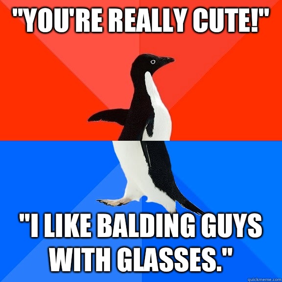 "You're really cute!" "I like balding guys with glasses."