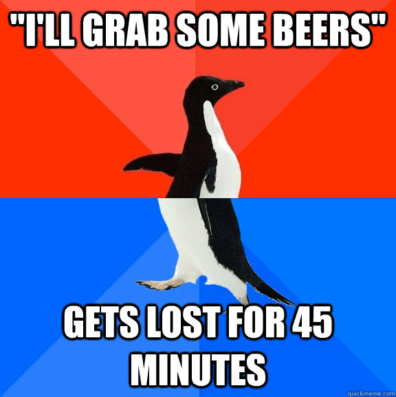 "I'll grab some beers" Gets lost for 45 minutes