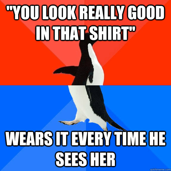 Gets new glasses. Crush notices. "Hey there's something different about you." Panic. "Uh. No."