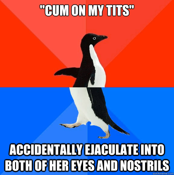 "cum on my tits" accidentally ejaculate into both of her eyes and nostrils