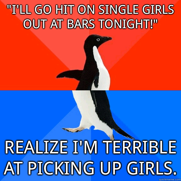 "I'll go hit on single girls out at bars tonight!" Realize I'm terrible at picking up girls.