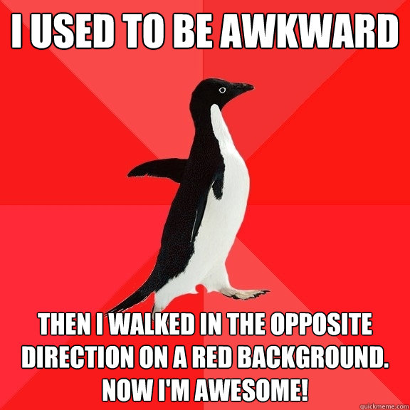 I used to be awkward Then I walked in the opposite direction on a red background. Now I'm awesome!