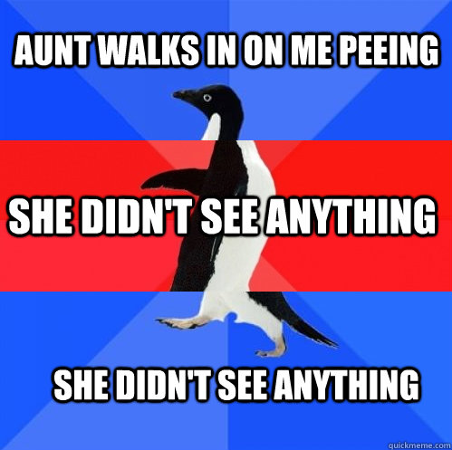 Aunt walks in on me peeing She didn't see anything She didn't see anything