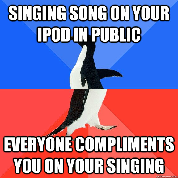 Singing song on your ipod in public Everyone compliments you on your singing