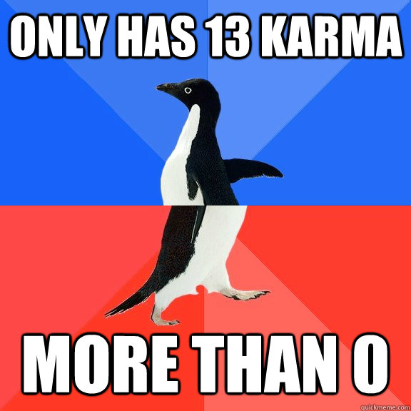 only has 13 karma MORE THAN 0