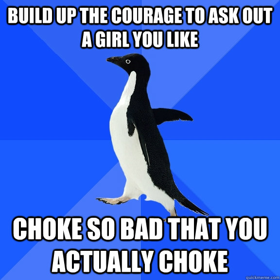 build up the courage to ask out a girl you like Choke so bad that you actually choke