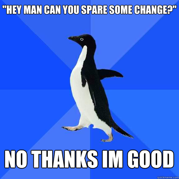 "hey man can you spare some change?" no thanks im good