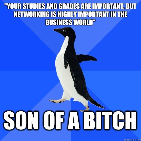 "Your studies and grades are important, but NETWORKING is highly important in the business world" SOn of a bitch