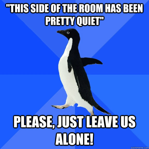 "This side of the room has been pretty quiet" Please, just leave us alone!