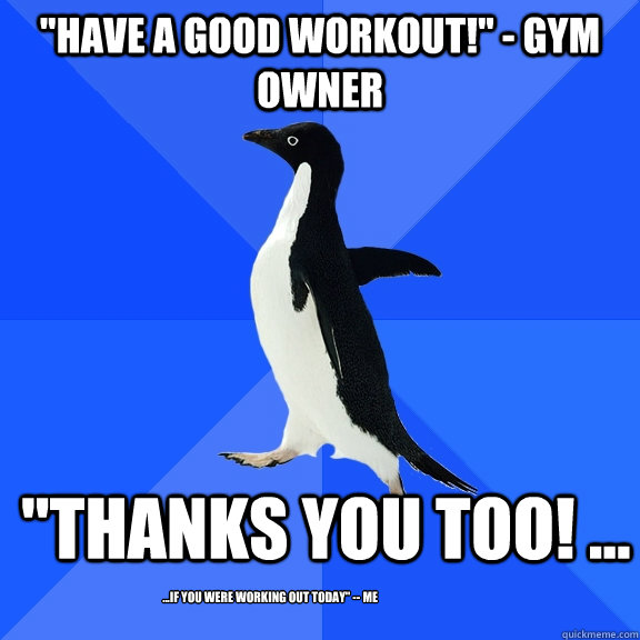 "Have a good workout!" - Gym Owner "Thanks you too! ... ...If you were working out today" -- ME