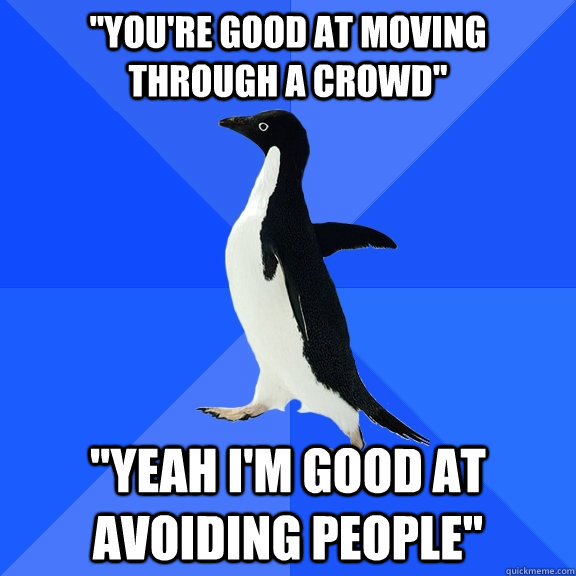 "You're good at moving through a crowd" "Yeah I'm good at avoiding people"