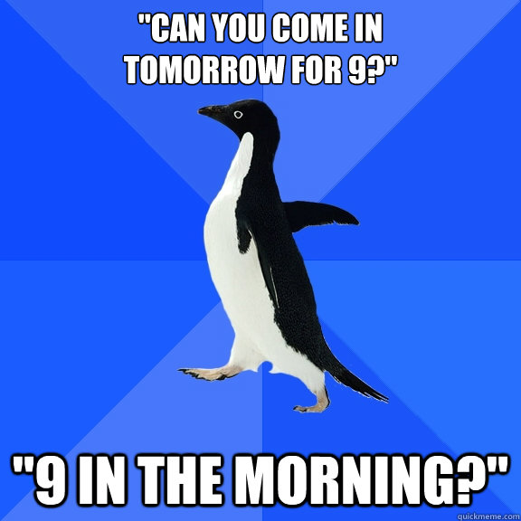 "Can you come in tomorrow for 9?" "9 in the morning?"
