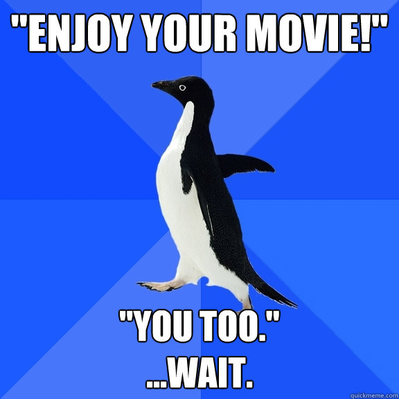 "Enjoy your movie!" "You too." ...WAIT.
