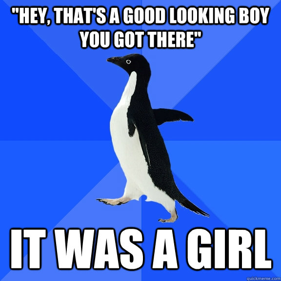 "hey, that's a good looking boy you got there" it was a girl