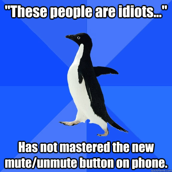 "These people are idiots..." Has not mastered the new mute/unmute button on phone.