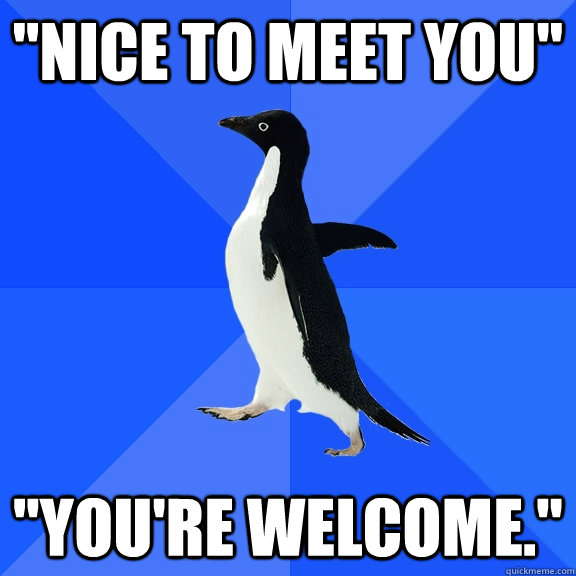 "Nice to meet you" "You're welcome."