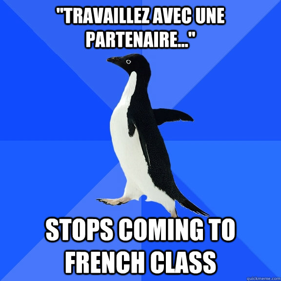 "Travaillez avec une partenaire..." Stops coming to French class