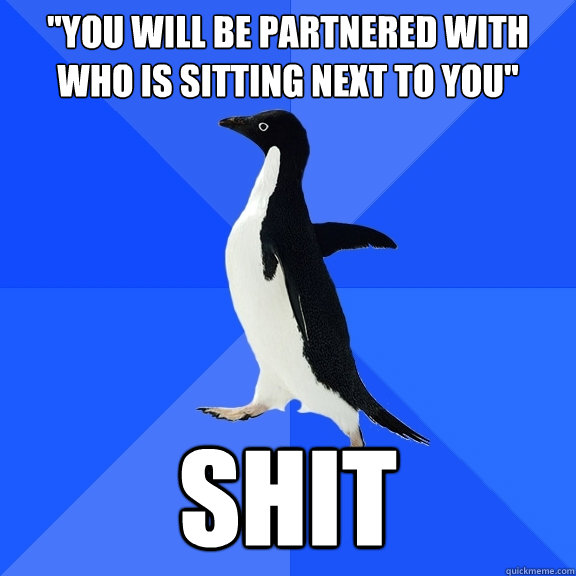 "you will be partnered with who is sitting next to you" shit