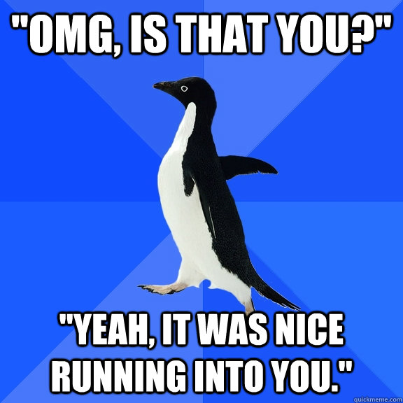 "OMG, is that you?" "Yeah, it was nice running into you."