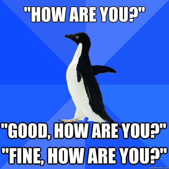 "How are you?" "Good, How are you?" "Fine, How are you?"