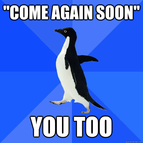 lunch break at work, sit at a table with two girls so it doesn't appear that I was deliberately avoiding them "this table is too small, we are going to sit at another one"