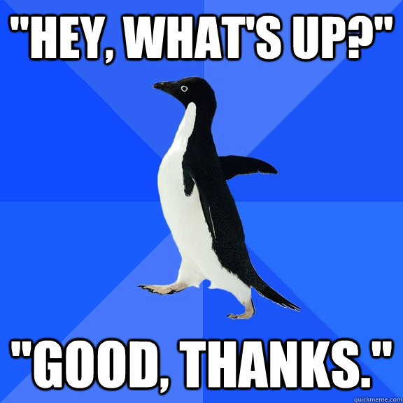"Hey, what's up?" "Good, thanks."