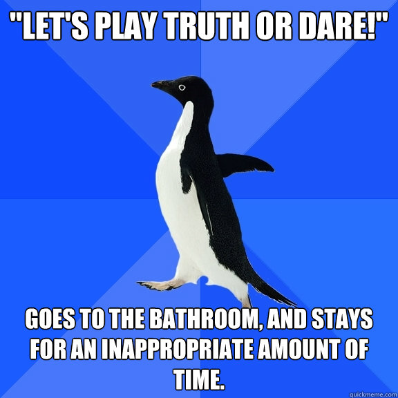 "let's play truth or dare!" goes to the bathroom, and stays for an inappropriate amount of time.