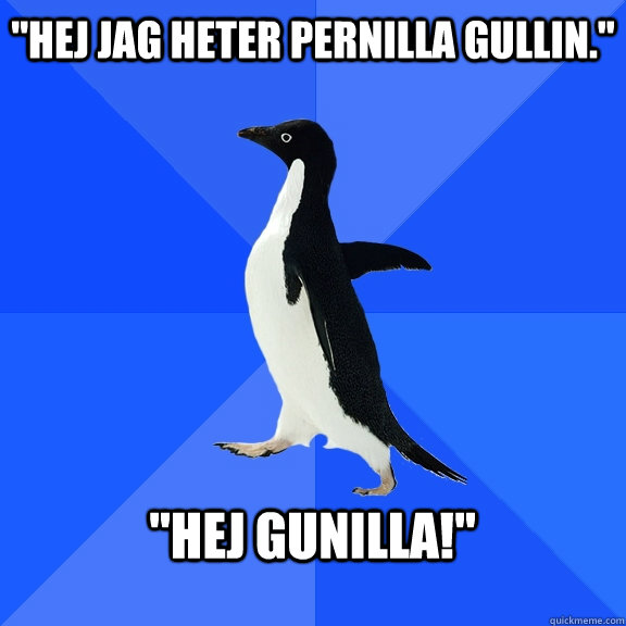 "Hej jag heter Pernilla Gullin." "Hej gunilla!"