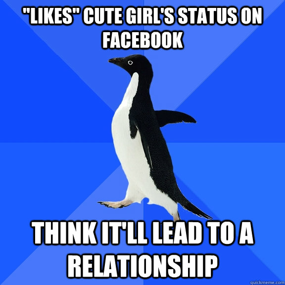 "Likes" cute girl's status on Facebook Think it'll lead to a relationship